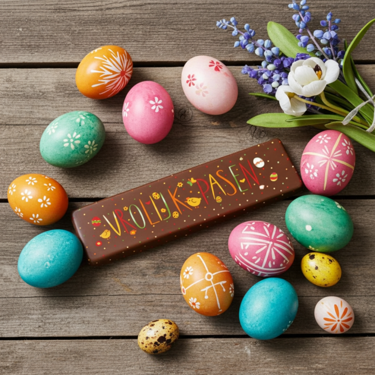 Echt Pasen: vrolijke paasbedrukking op de reep zelf.